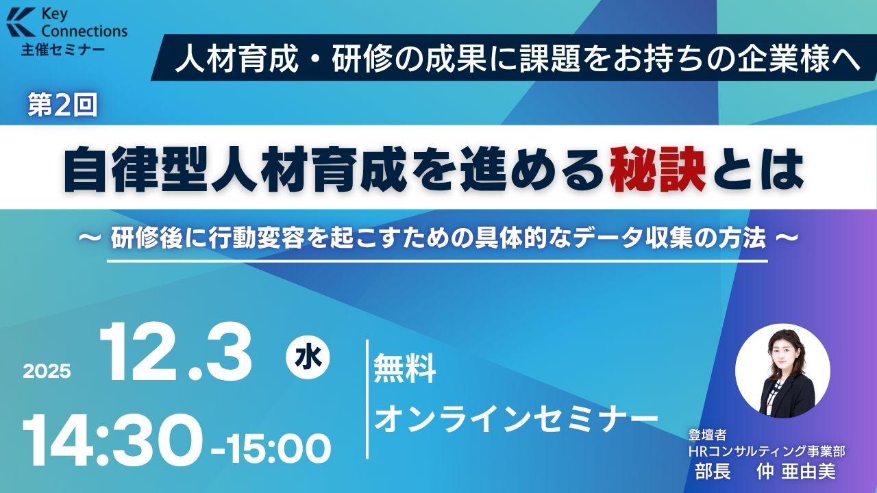 2025年11月19日【セミナー情報】自律型人材育成シリーズ#1 『研修後の行動変容をデータ化する重要性・意義とは 』―アーカイブ配信中―